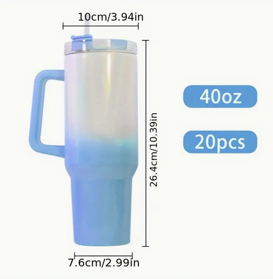 40oz Stainless Steel Sublimated Shimmer Gradient Tumbler with Handle and Straw