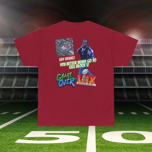 Super Bowl Kendrick Lamar Graphic Heavy Cotton Tee - 'Game Over' & 'SAY DRAKE!' Cell Block 1